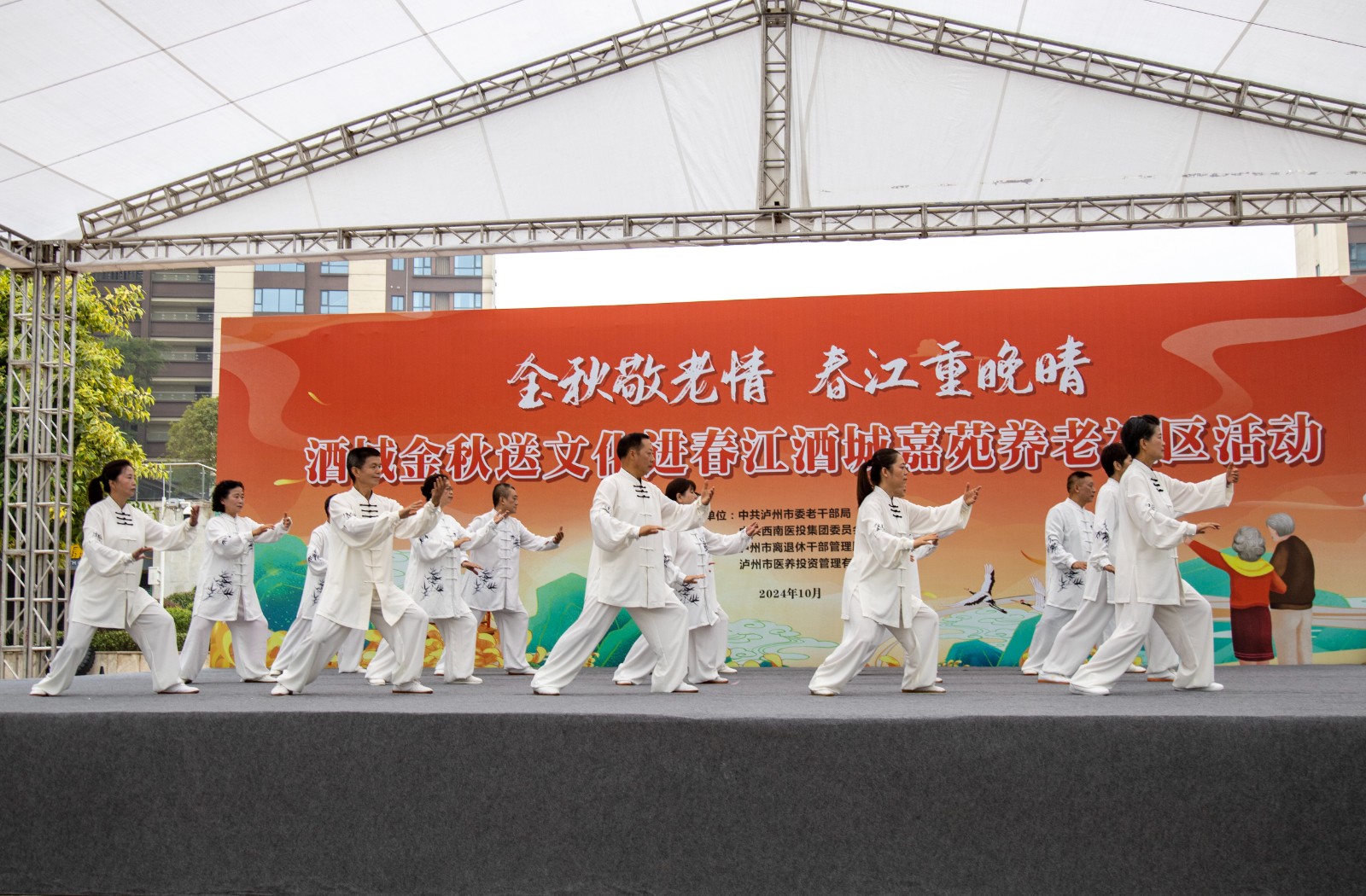 金秋送爽,丹桂飄香。為弘揚中華民族尊老愛老的傳統美德,豐富老年朋友的文化生活,增強老同志的獲得感和幸福感,10月10日,由瀘州市委老干部局與西南醫投集團聯合舉辦的“金秋敬老情·春江重晚晴”酒城金秋送文化活動在春江酒城嘉苑養老社區舉行,為社區老年朋友獻上了一場文化盛宴。市委組織部副部長、老干部局局長唐雯,瀘州發展控股集團副總經理、西南醫投集團黨委書記、董事長林健出席活動。